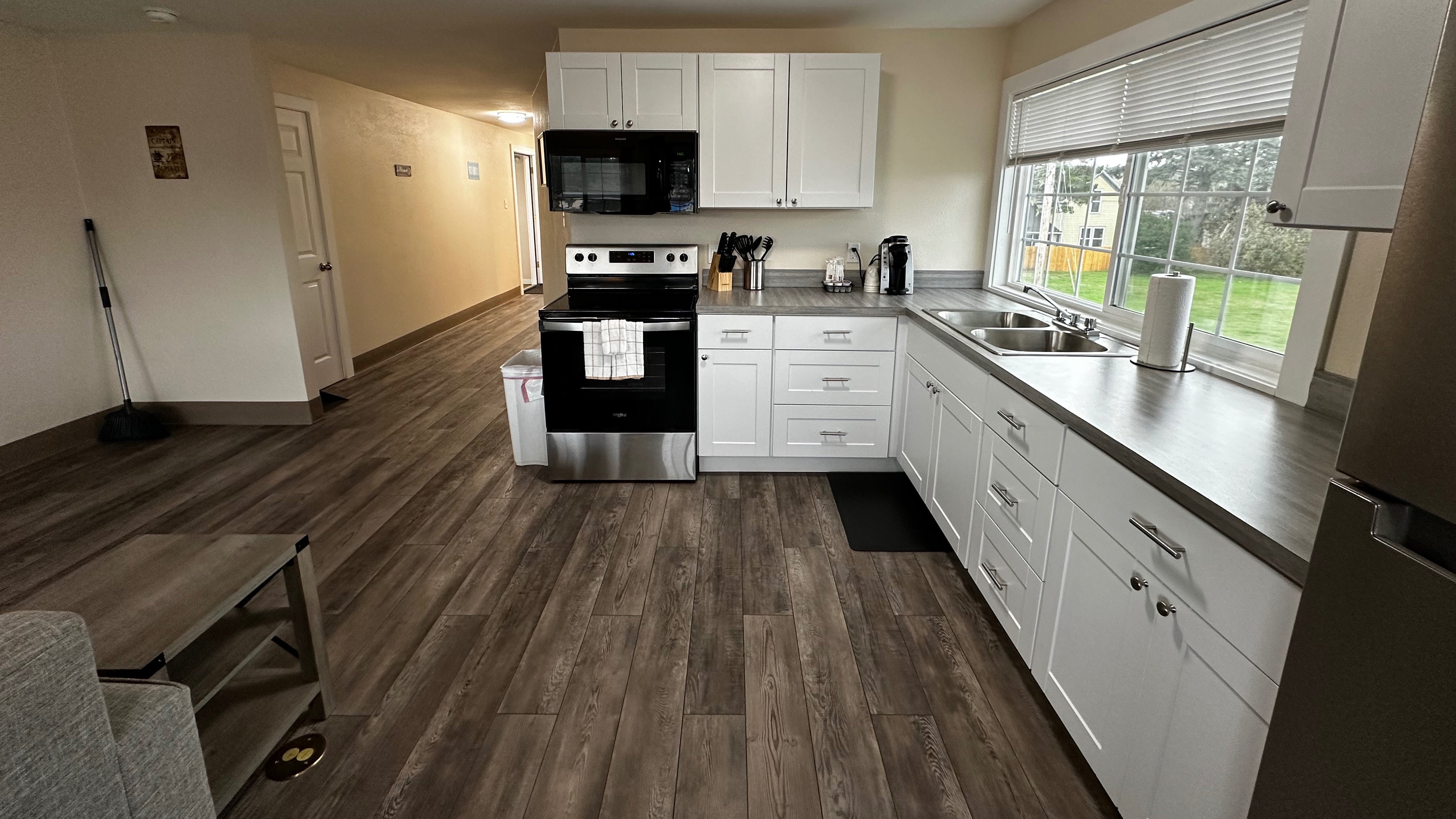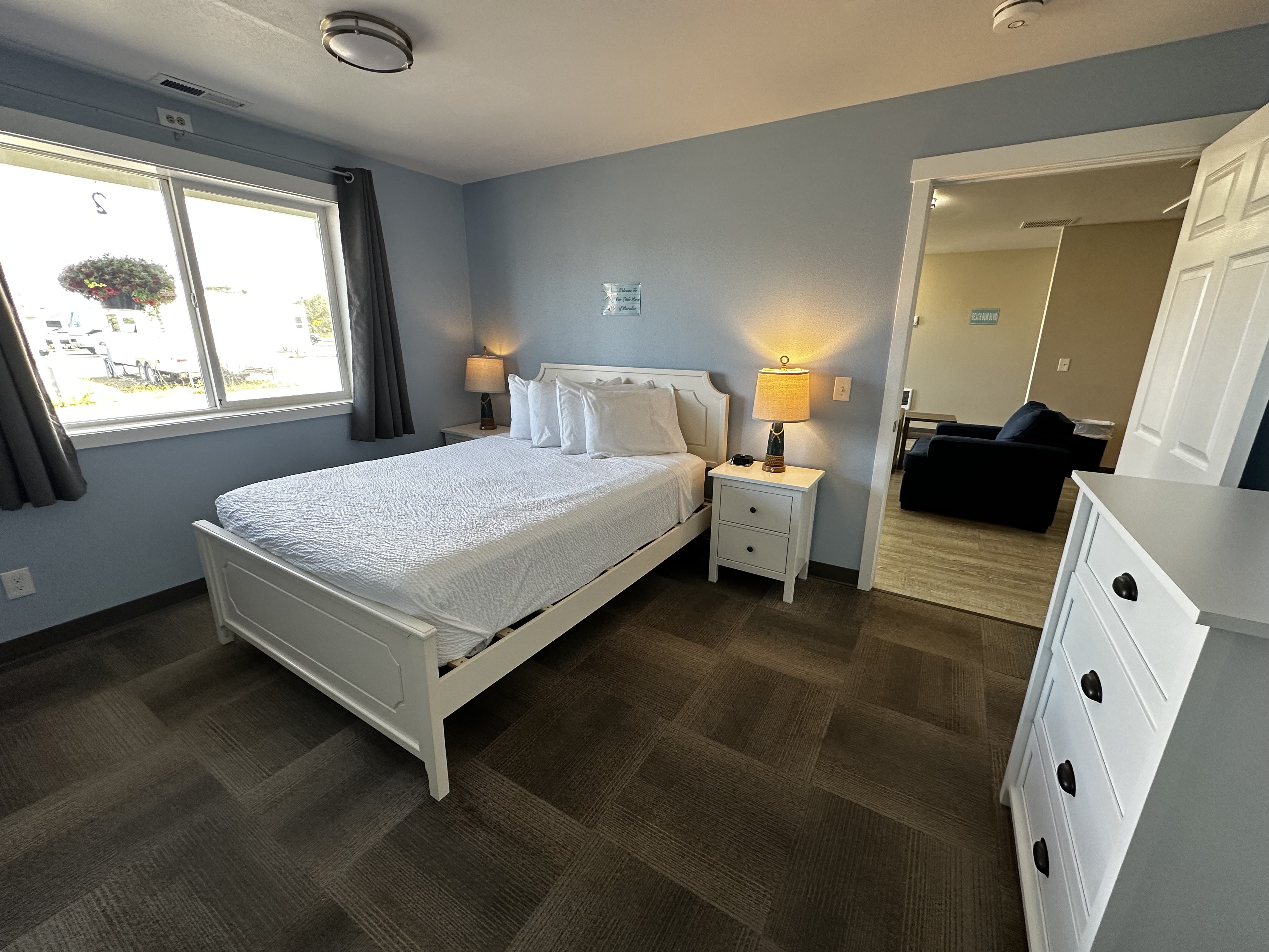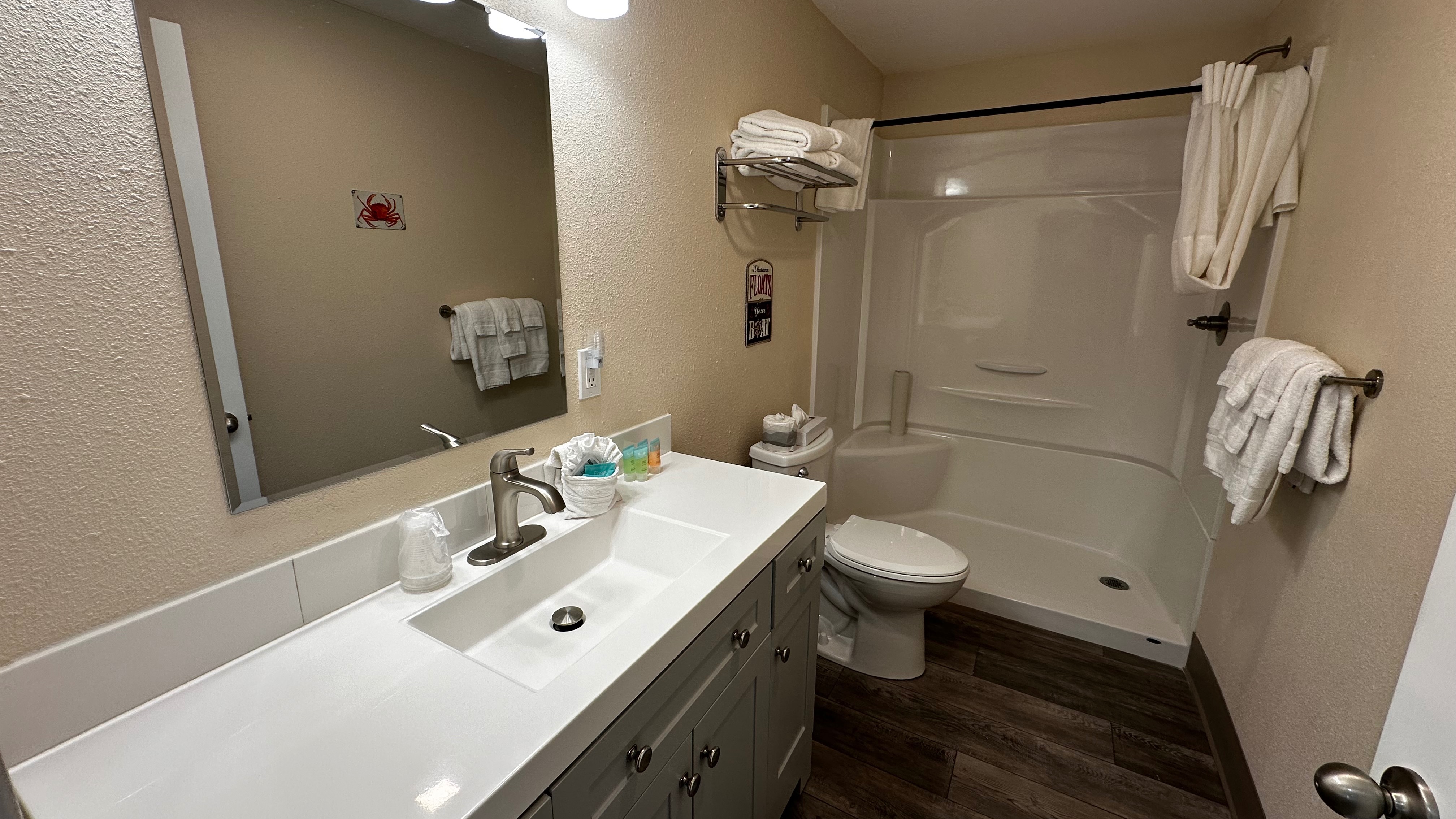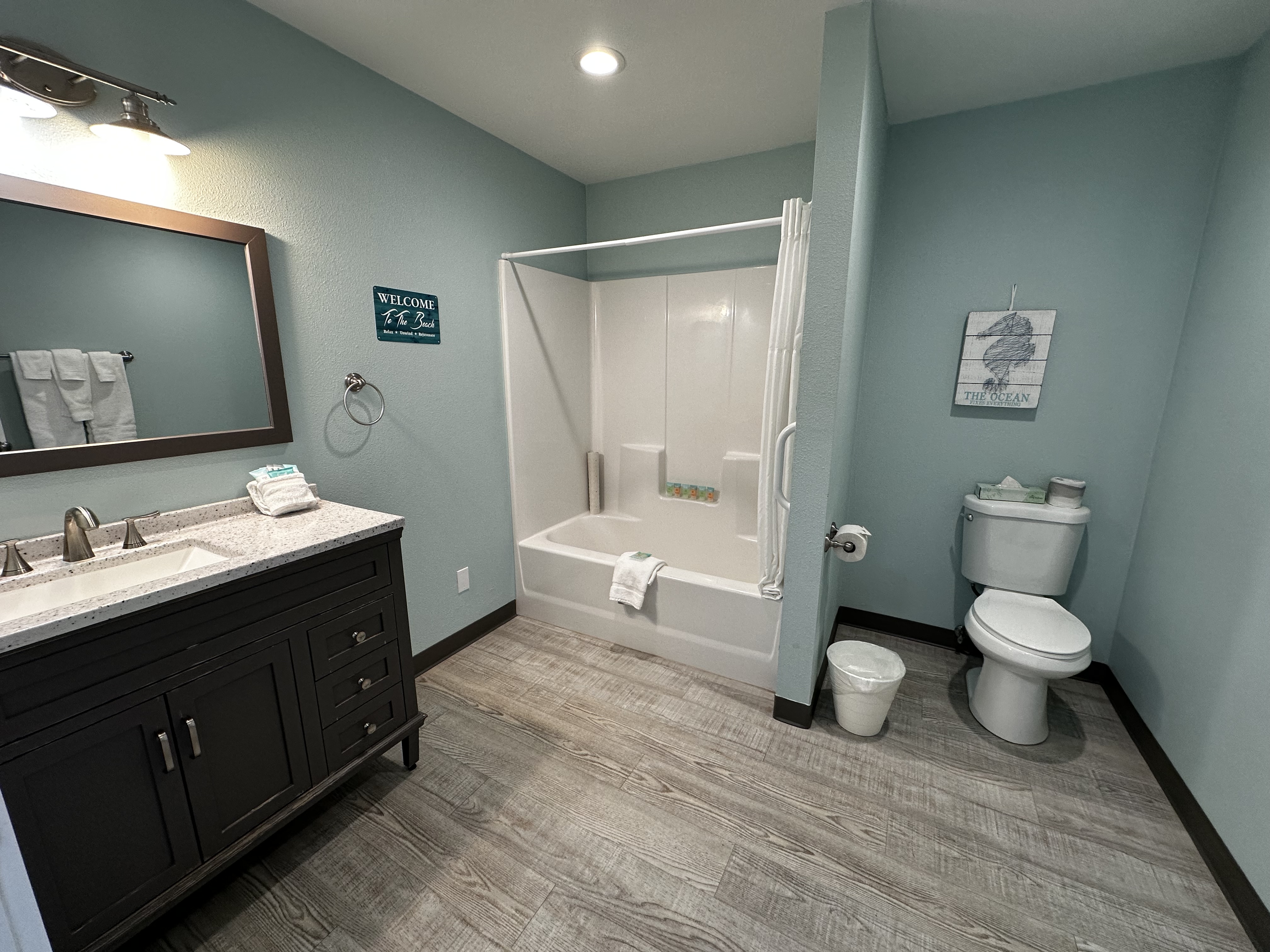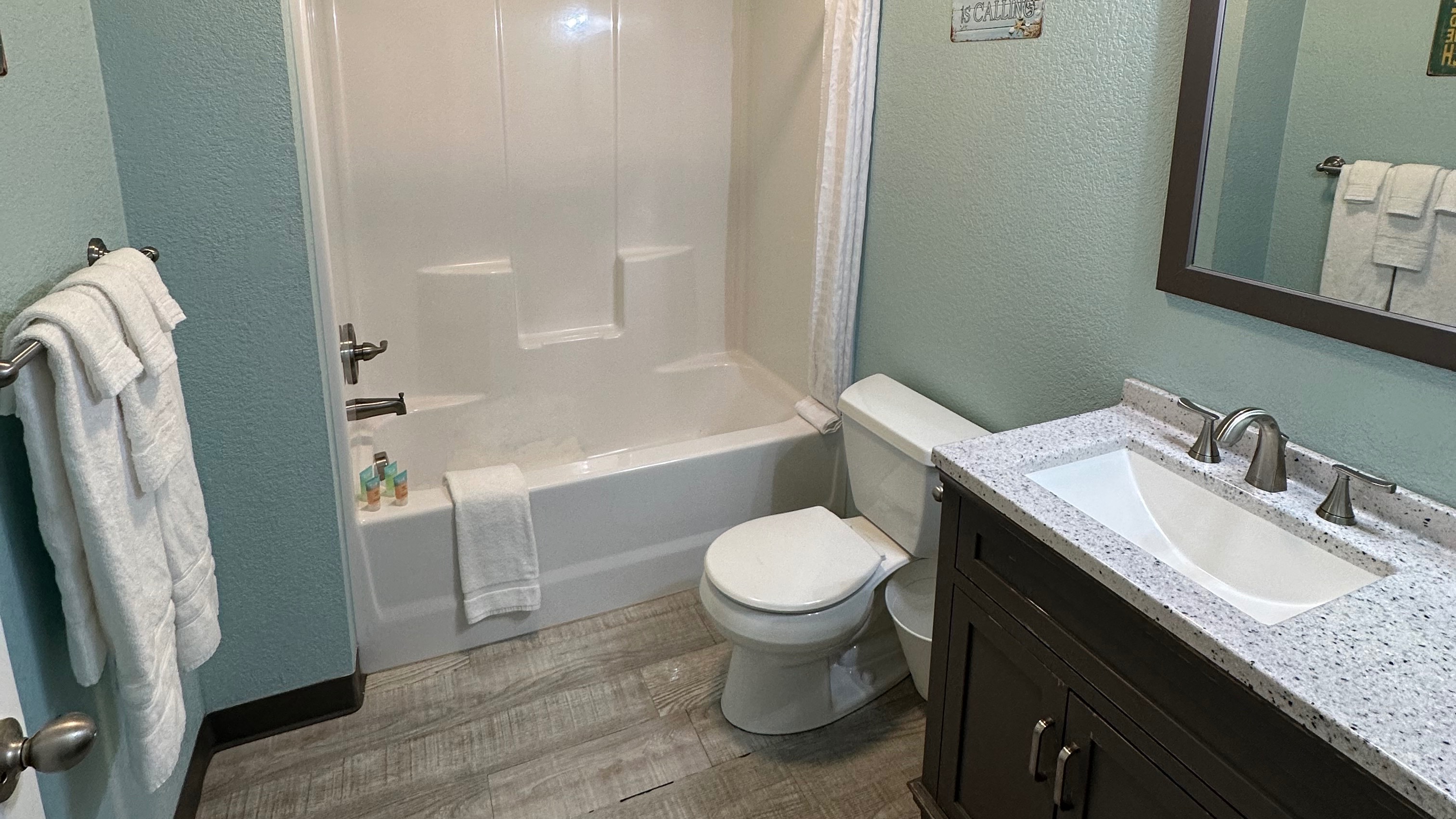 Need handicap accessible? The bathroom includes tiled floor, easy accessible shower, grab bars, tall toilet, & 36" door