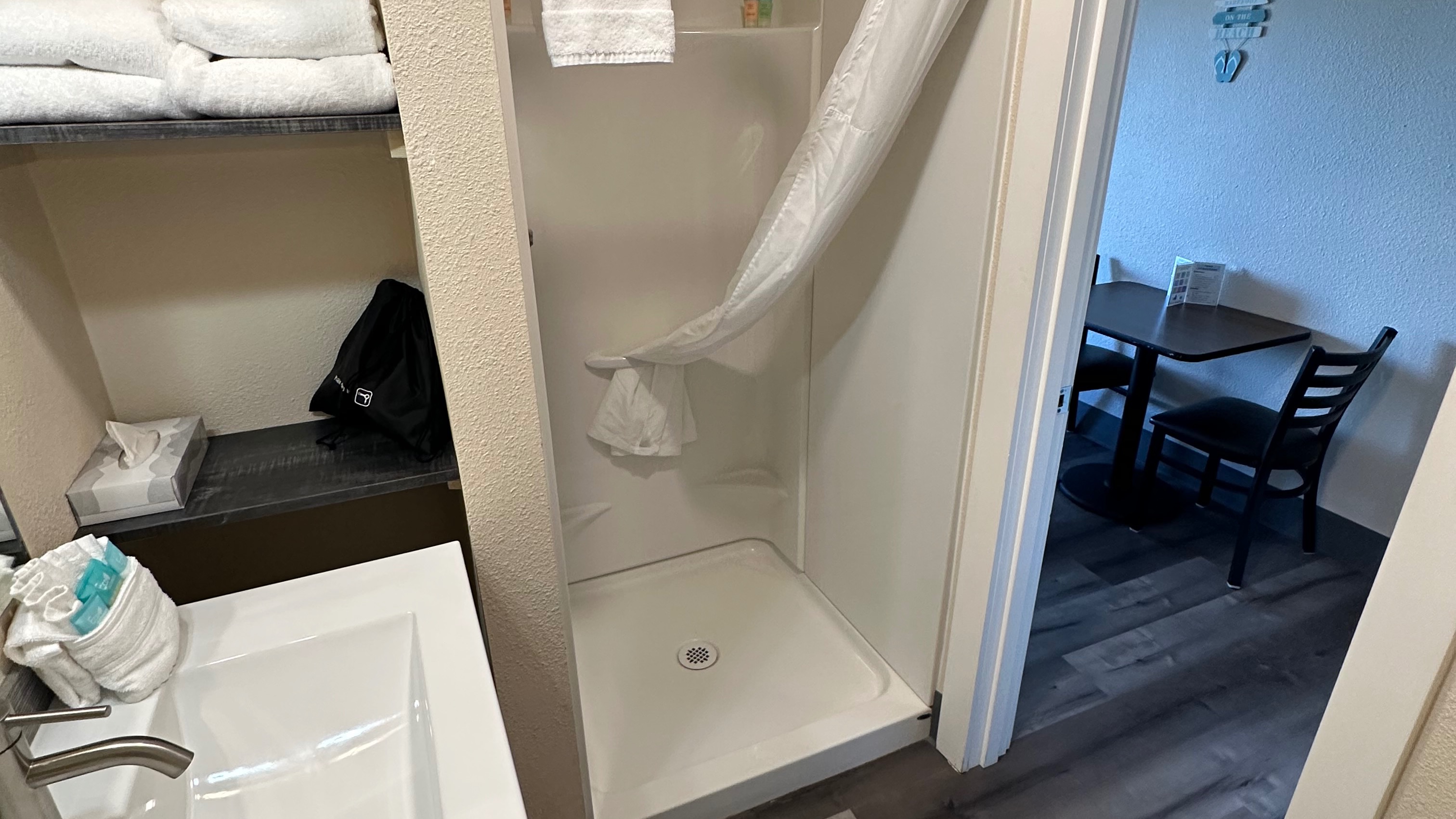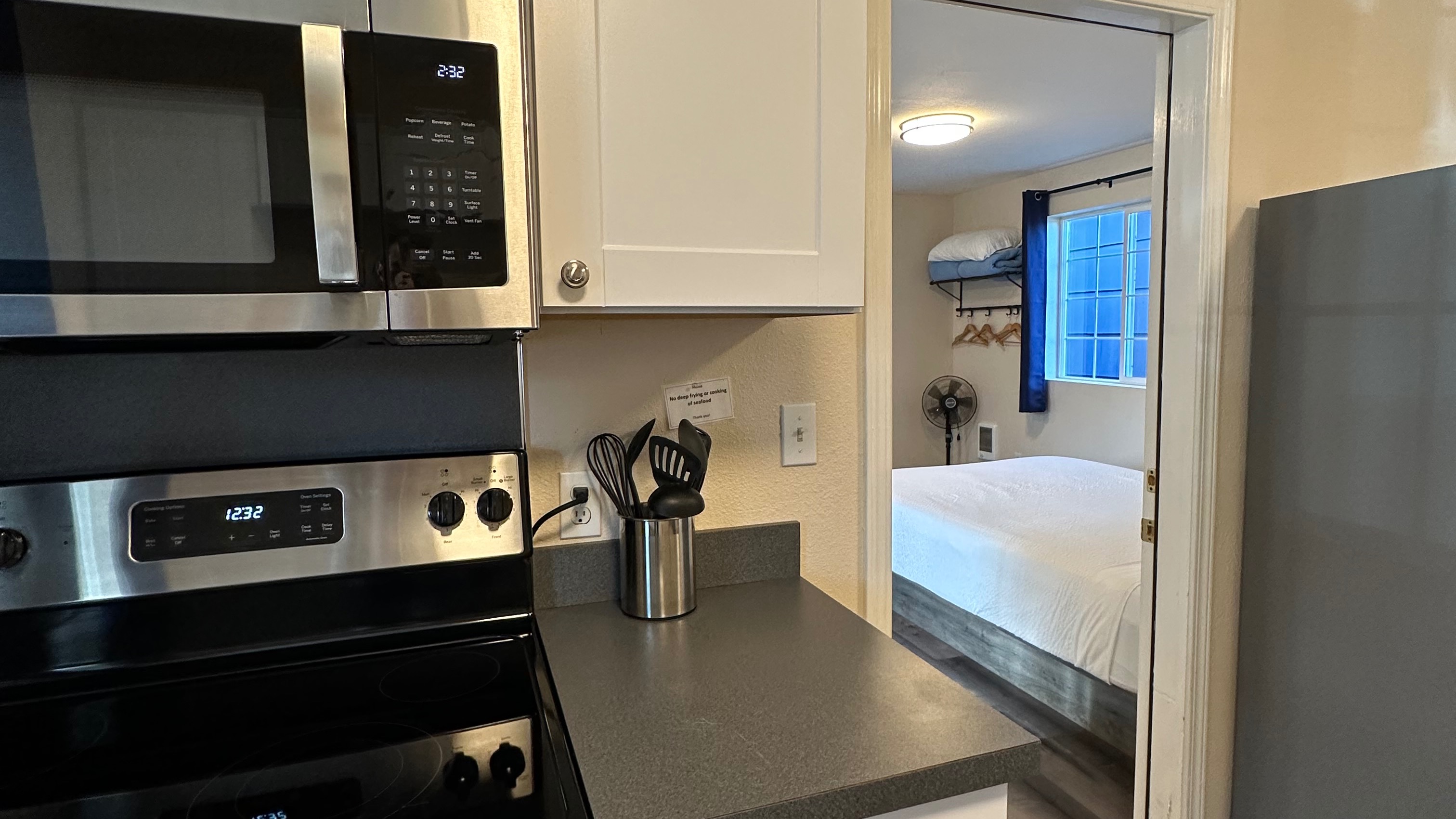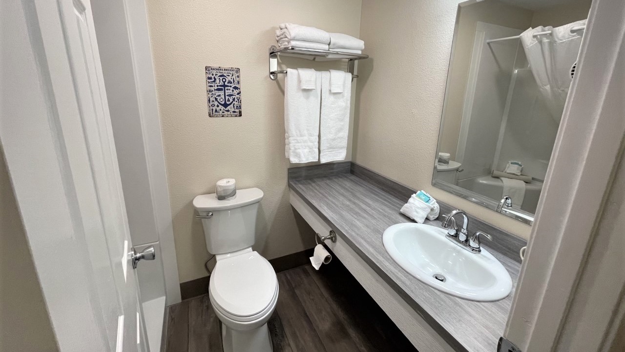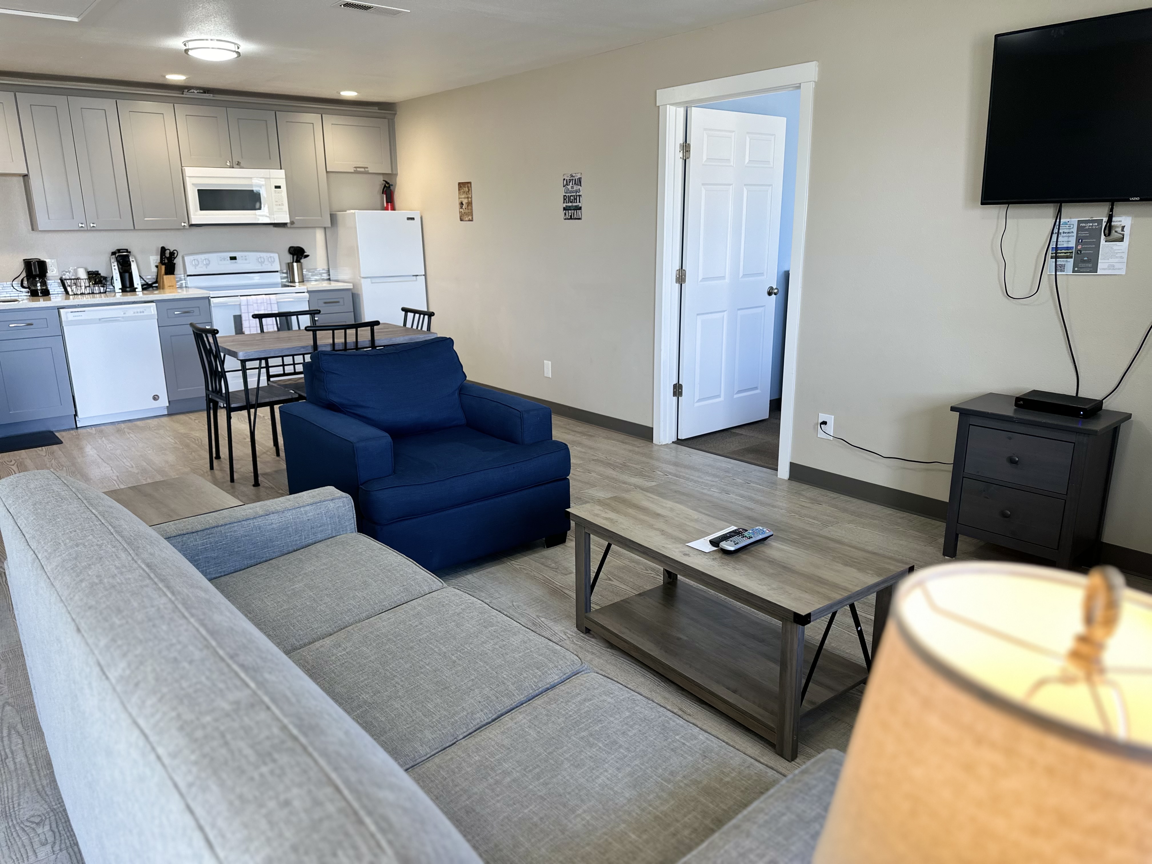 Need handicap accessible? The bathroom includes tiled floor, easy accessible shower, grab bars, tall toilet, & 36" door
