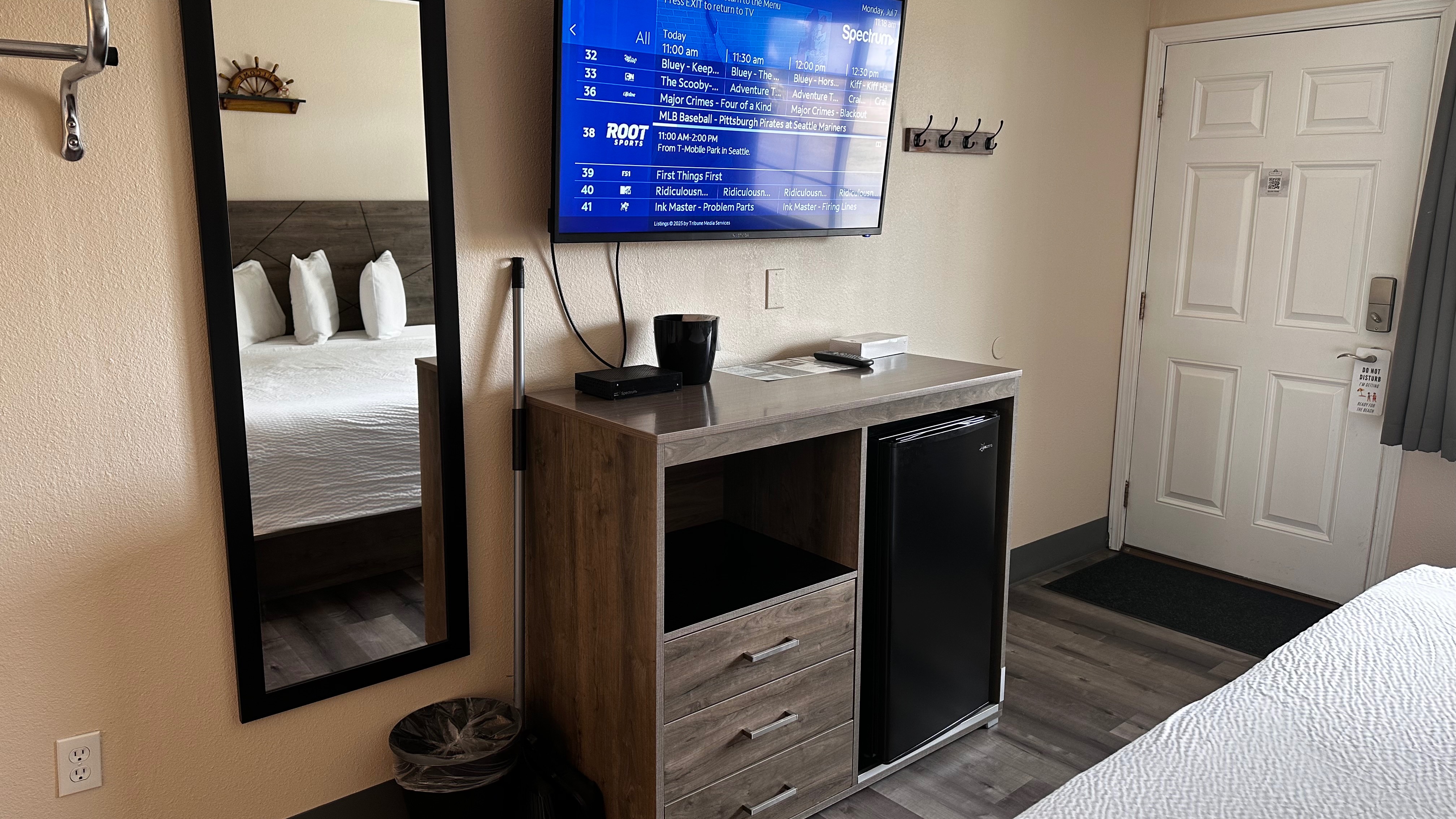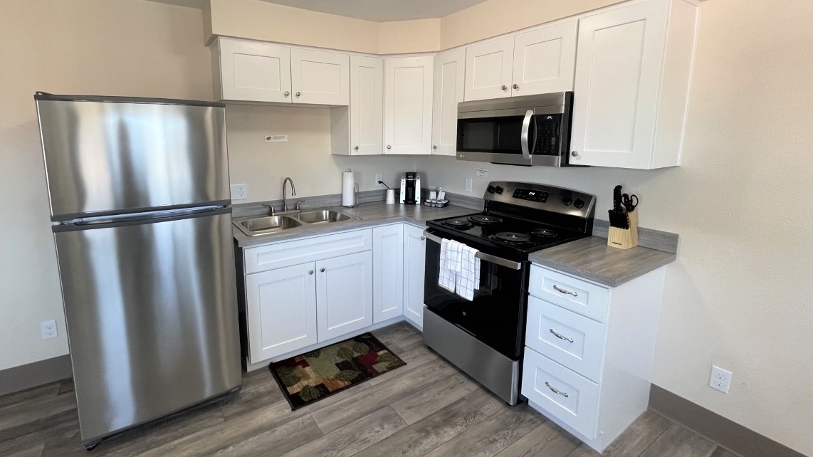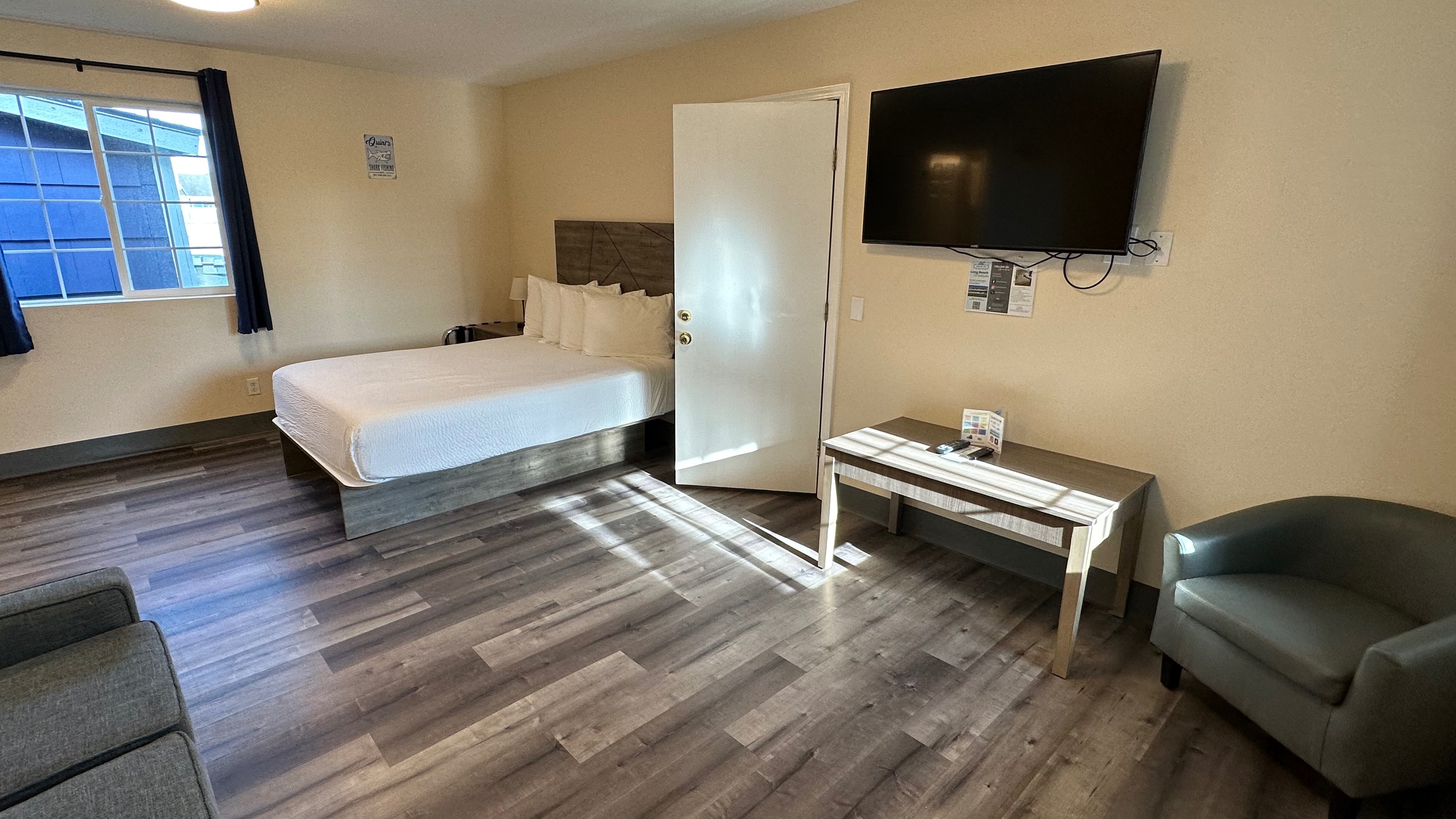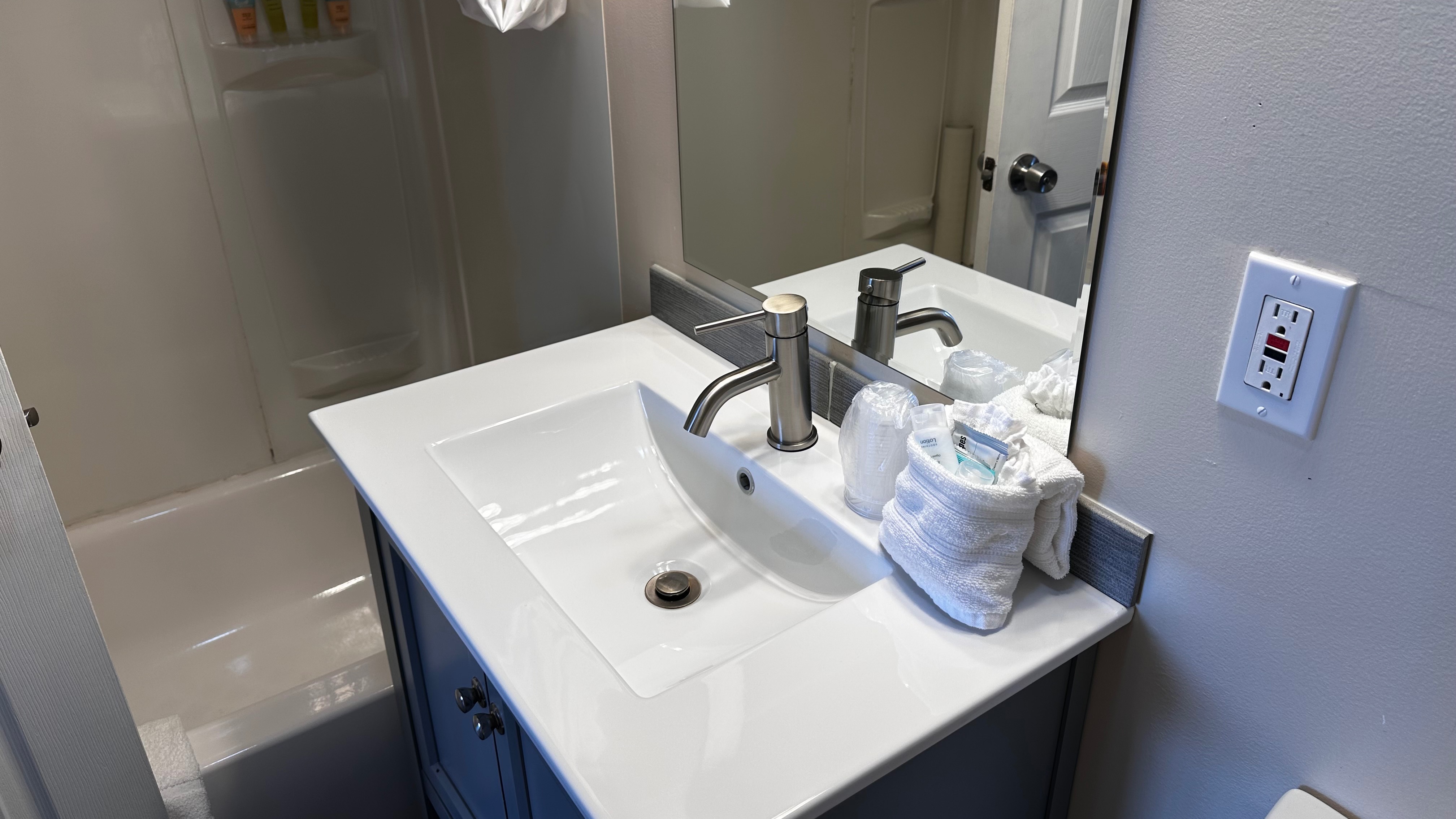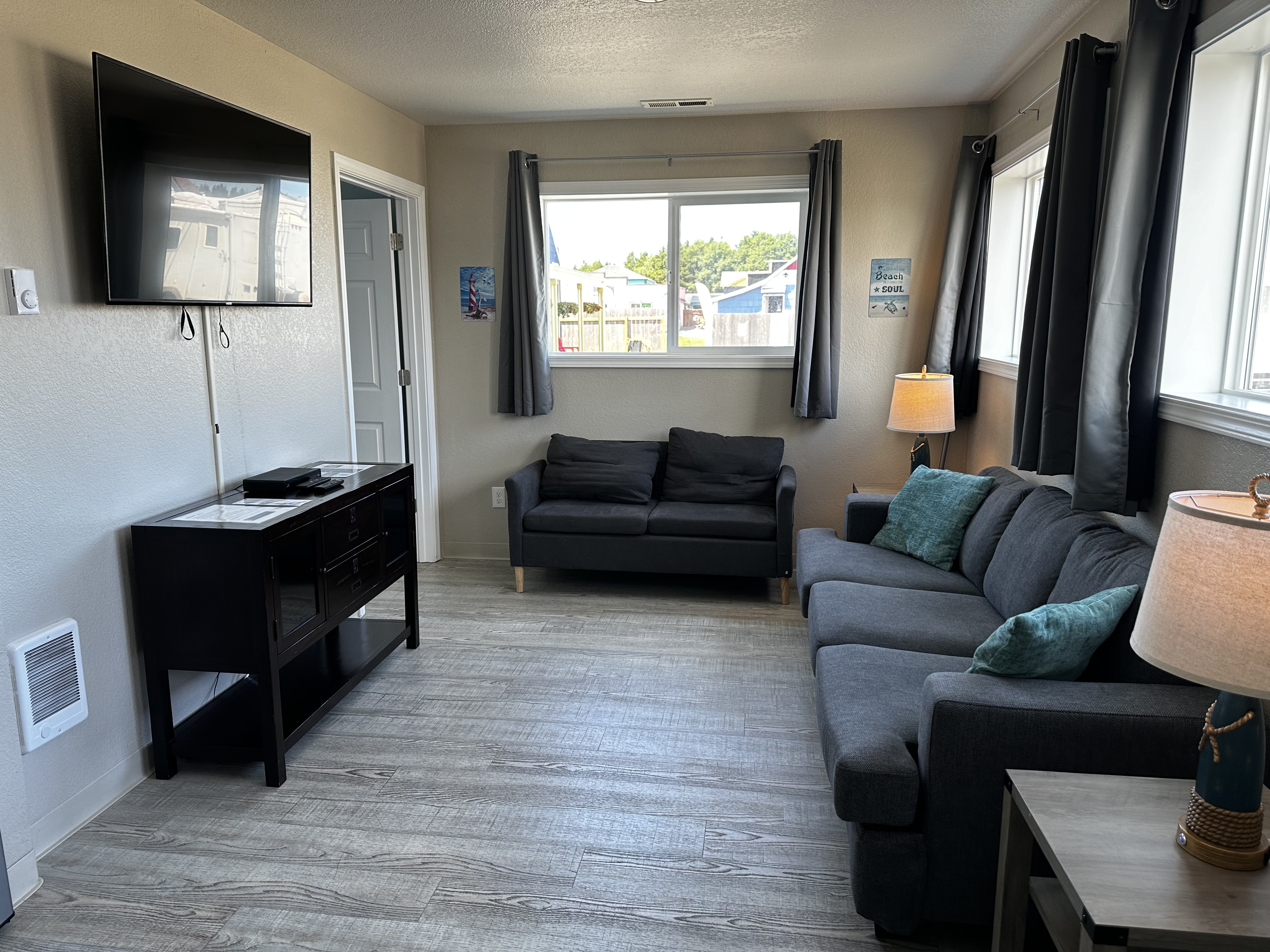 Need handicap accessible? The bathroom includes tiled floor, easy accessible shower, grab bars, tall toilet, & 36" door